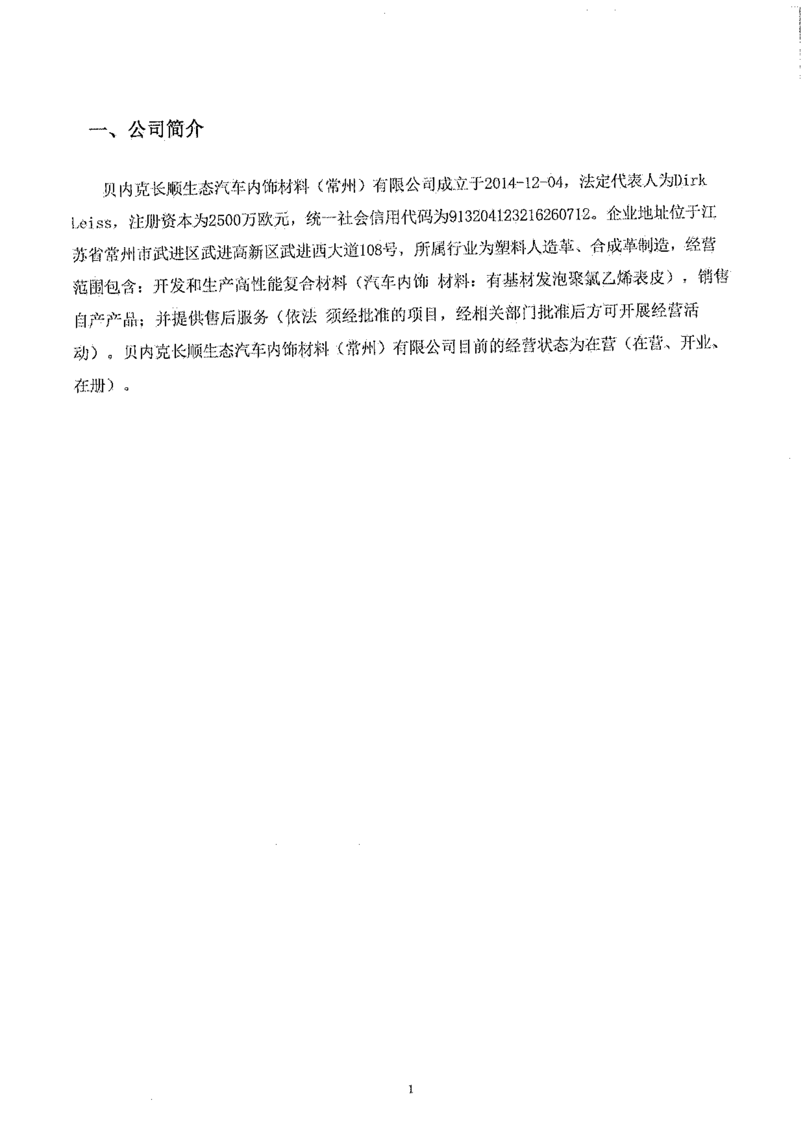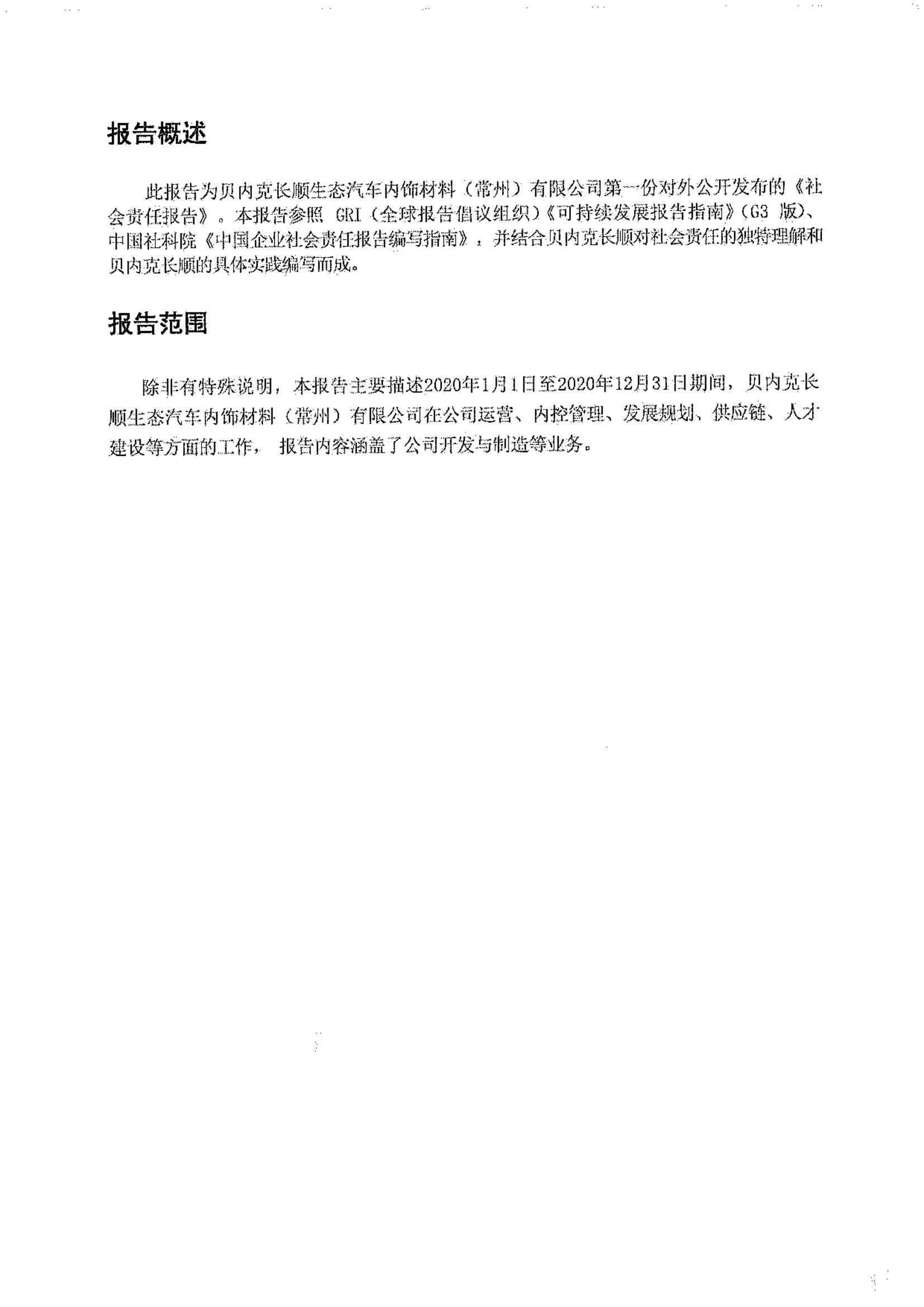 貝內克長順生態汽車內飾材料(常州)有限公司社會責任報告(2020年度)